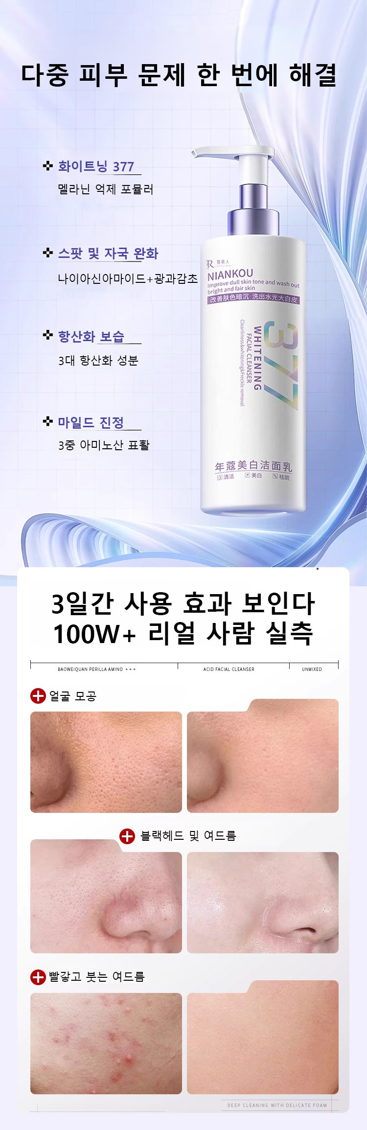 한 번의 세안으로 화사한 피부 톤 완성!